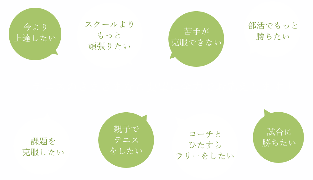 貴方のテニスの「お悩み」や「こうなりたい」をお聞かせください。